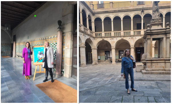 Til venstre: Språkrådets direktør Åse Wetås saman med Sandra Cuadrado frå TERMCAT. Foto: Sandra Cuadrado. Til høgre: Utanrikskorrespondenten gjekk rundt i estetisk eufori i dei vakre omgjevnadene og fekk med seg mykje kunnskap og inspirasjon heim.