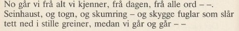 Døme frå romanen Mot stupe av vestlendingen Ragnvald Vaage: