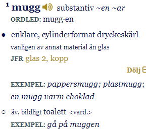 Siden uttrykket står i Svenska Akademiens ordbok, men ikke i Ordbog over det danske Sprog, er det sannsynligvis snakk om mugger i den ene eller andre av de svenske betydningene, jf. Svensk ordbok: