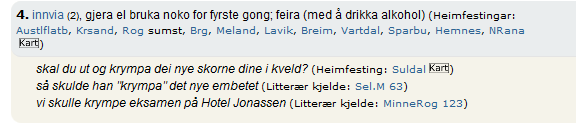 Verbet krympe kan − ved sida av ‘minke’ og ‘minske’ − òg ha andre tydingar, mellom anna ‘feire ved å drikke alkohol’.
