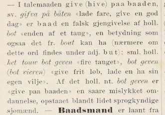 Etymologane Hjalmar Falk og Alf Torp er ikkje snaue i omtalen av uttrykket: