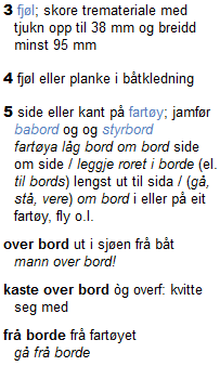 Bord er eit kjent og sjølvstendig ord som mellom anna betyr ‘skipsside’. Her er dei tre mest relevante tydingane, frå Nynorskordboka:
