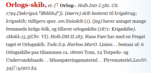Ifølge Bokmålsordboka og andre ordbøker betyr orlogsskip og krigsskip det samme. Dette er for enkelt hvis vi ser på eldre bruk, jf. Ordbog over det danske Sprog: