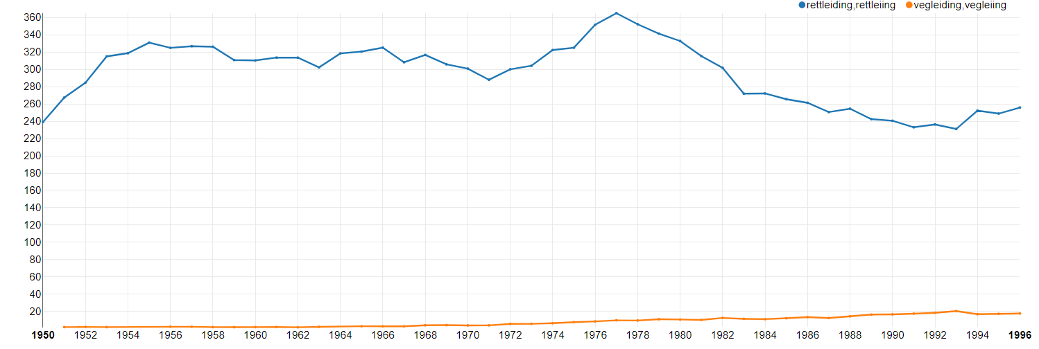Det er tidstypisk å vera var for alt som kan tolkast negativt eller strengt i visse samanhengar. Det går ut over rettleiinga. Fleire som driv med rettleiing, har skrive til oss og fortalt at dei er redde for leddet rett-, for det verkar meir bombastisk enn veg. (At veg oftast er noko fastlagt, ser merkeleg nok ikkje ut til å plaga nokon, eller at å lede, i motsetnad til å leie på bokmål, er å føra.)