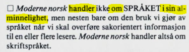 Her er et godt eksempel hentet fra forordet til fjerde utgave av Finn-Erik Vinjes Moderne norsk (1987):