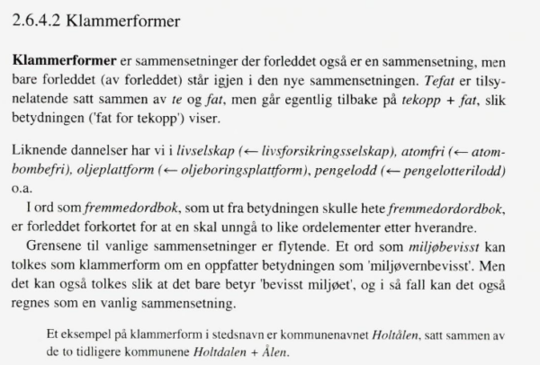Merk: «Klammerform» er et forvirrende navn på fenomenet, for det har vært brukt synonymt med sideform, som er noe helt annet.